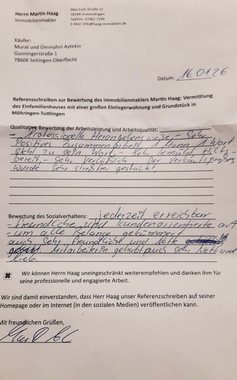 Das Interesse war groß, und schon nach kurzer Zeit fanden sich ernsthafte Kaufinteressenten. Ich habe dann sämtliche Schritte – von der Vorbereitung der Unterlagen bis hin zur finalen Kaufabwicklung – sorgfältig begleitet, um einen reibungslosen Ablauf zu gewährleisten. Am Ende war es besonders schön zu sehen, dass sowohl Käufer als auch Verkäufer mit dem Ergebnis zufrieden waren.”